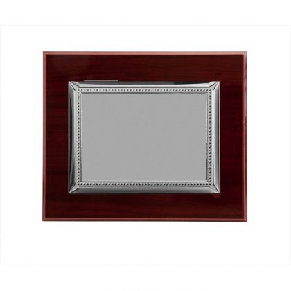 Cuenta con un marco de madera que aporta calidez y distinción, combinado con un interior decorado con borde de bolas y una placa de aluminio, ideal para grabar mensajes personalizados.