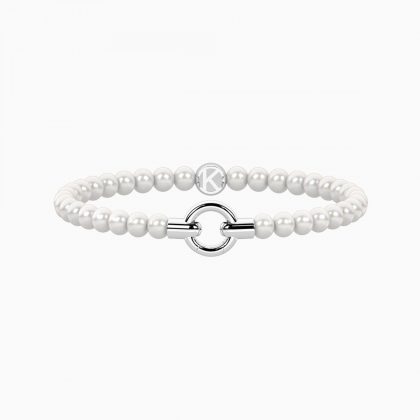 Pulsera elástica y modular con perlas de concha de la colección Mamanonmama de Kidult, una joya delicada y femenina diseñada para crear combinaciones llenas de significado. Su diseño modular permite añadir charms y personalizar la pulsera para representar recuerdos, emociones o personas especiales.