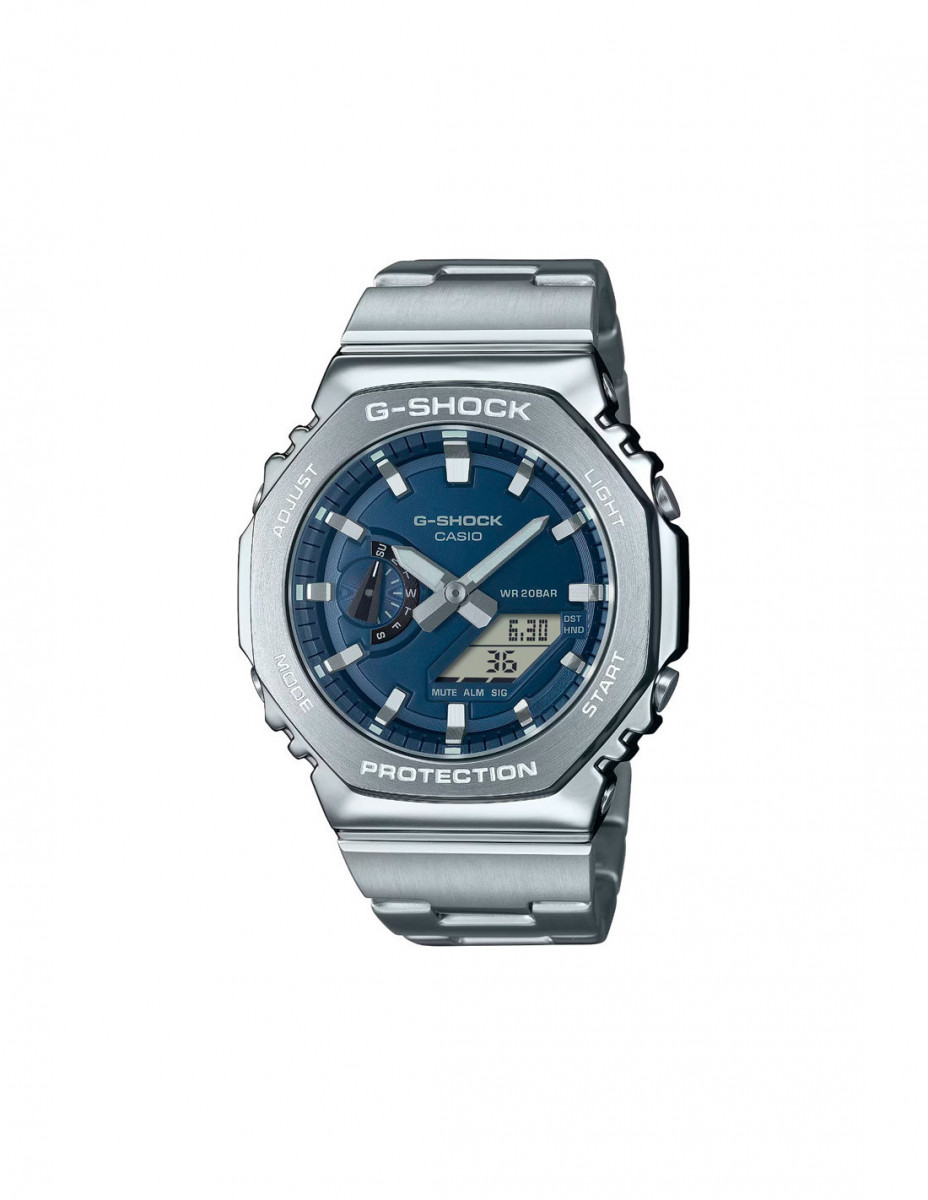 Reloj Casio G-Shock GM-2110D-2BER con caja de acero inoxidable/resina, esfera metálica de latón color azul y brazalete. Movimiento de cuarzo.