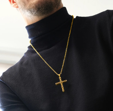 Collar con cruz en acero inoxidable chapado en oro: presencia y estilo atemporal