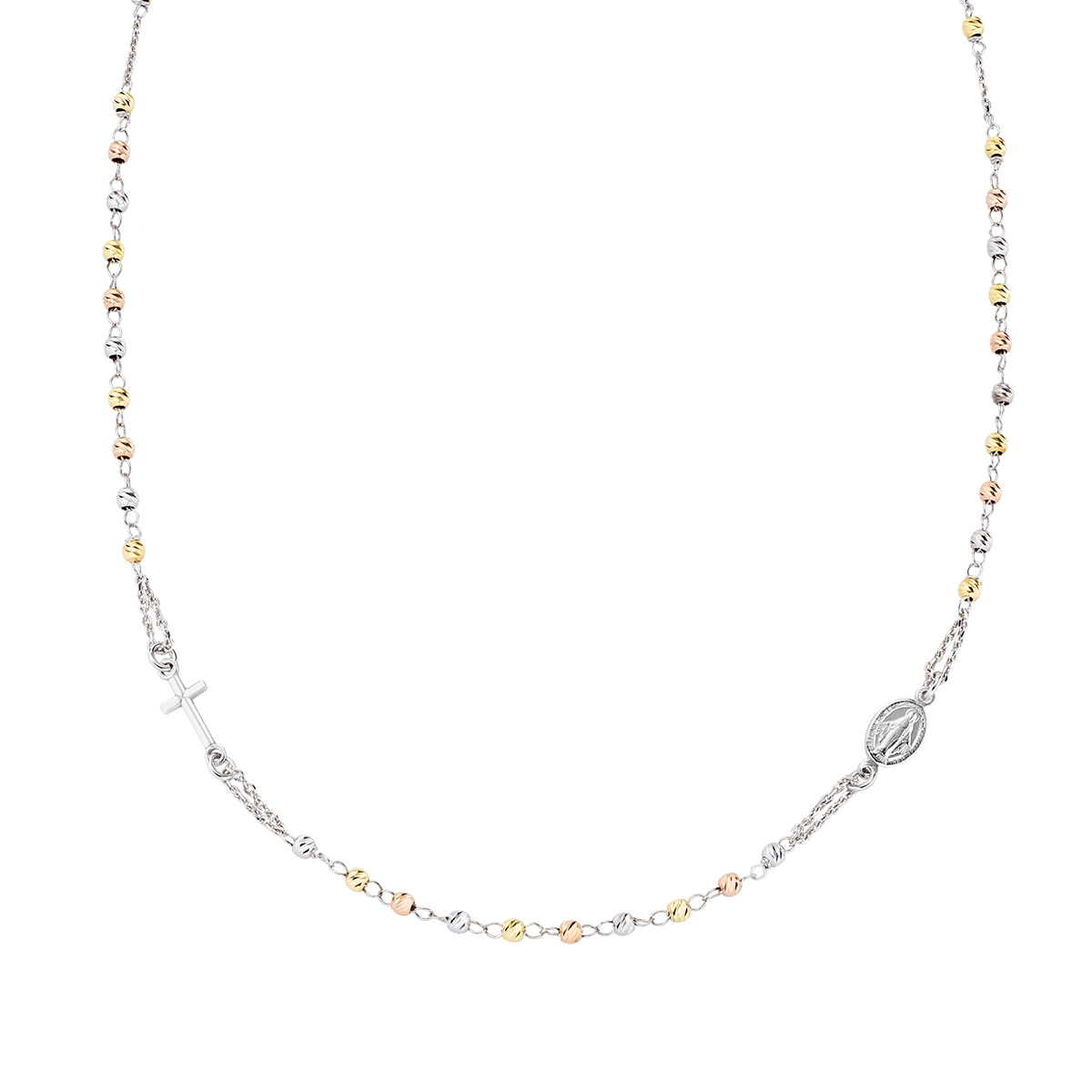 Collar de Plata 925 – Granos Rodio/Rosa/Amarillo – Largo 50 cm + 2 cm – Completo con bolsa, caja y garantía