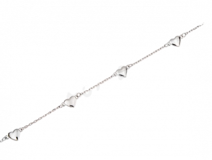 Pulsera rodiada en plata de 1ª ley de 925 milésimas, con un diseño fino de 0,5 mm de ancho que combina delicadeza y estilo. Los centros de 5 x 5,5 mm presentan corazones 3D intercalados, creando un juego de volúmenes y brillo que aporta movimiento a la pieza. Su acabado en rodio realza la luminosidad de la plata y garantiza una mayor durabilidad, convirtiéndola en una pulsera romántica, elegante y perfecta para el día a día.