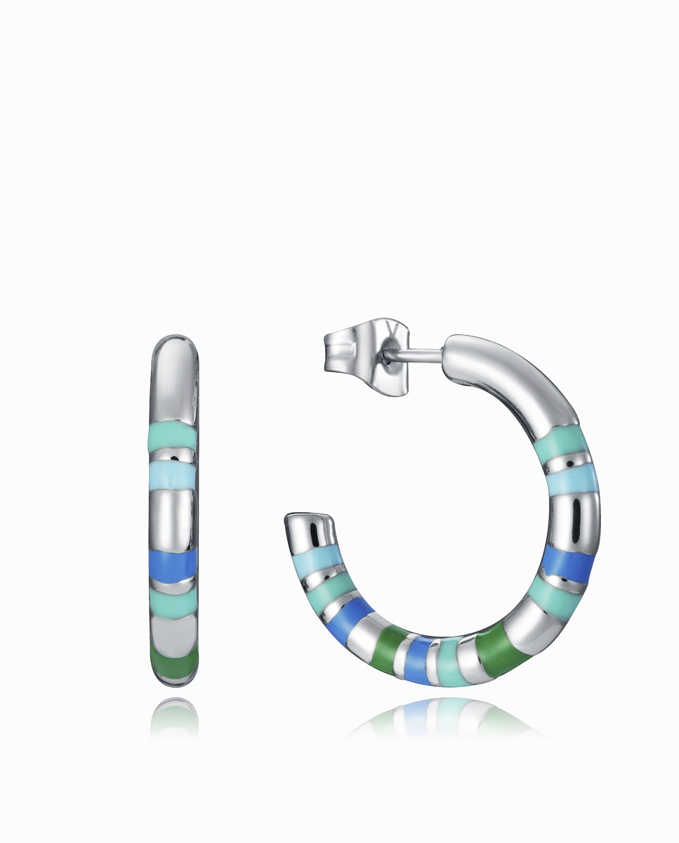 Pendientes Viceroy Chic de acero tipo arco con rayas de esmalte en tonos azules.
